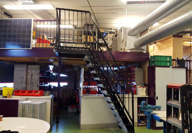Magazijntrap in het technieklokaal van het Kennemer College te Heemskerk.